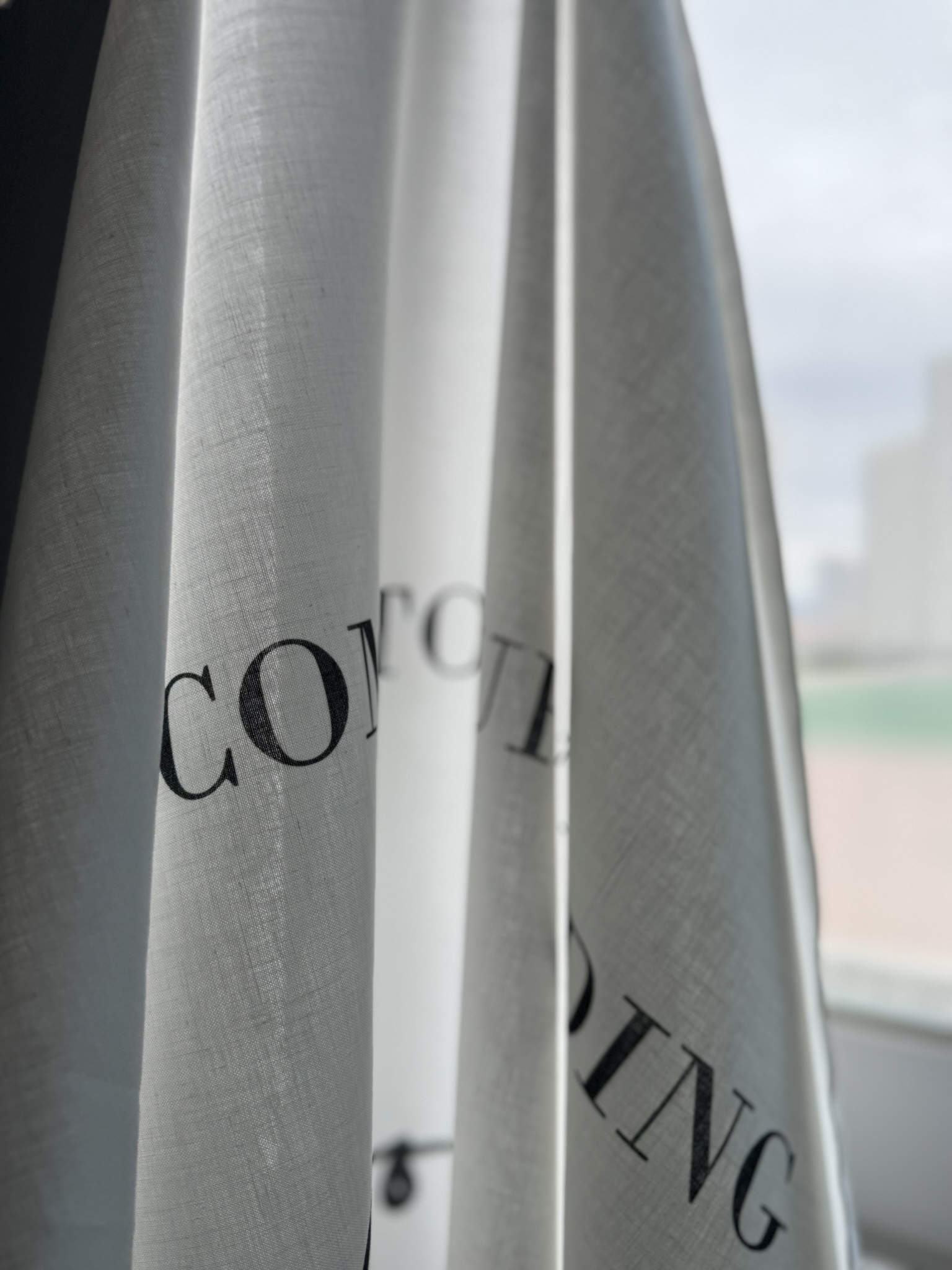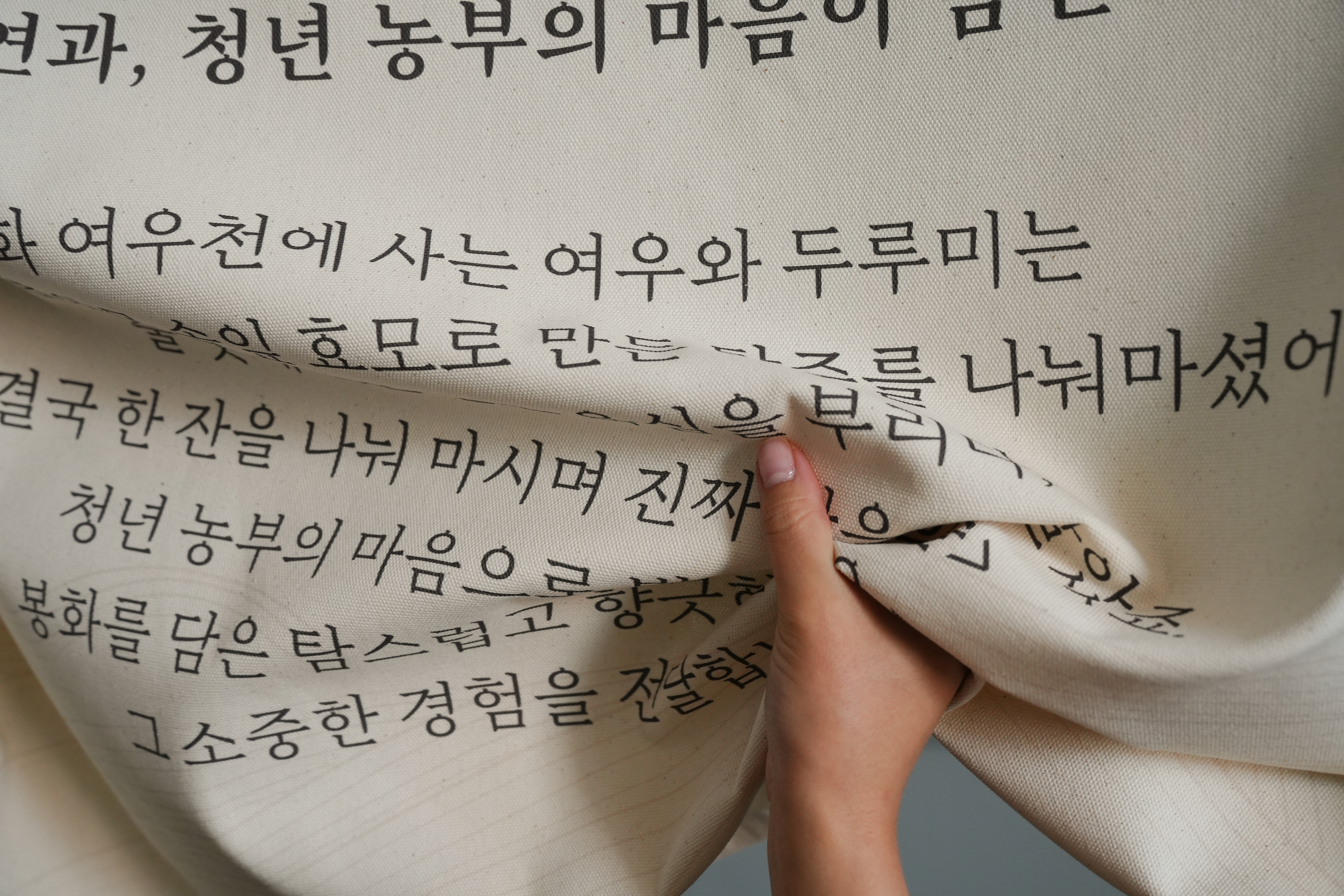 광목 특유의 자연스러운 결과 질감이 공간에 부드러운 조화를 더 합니다.